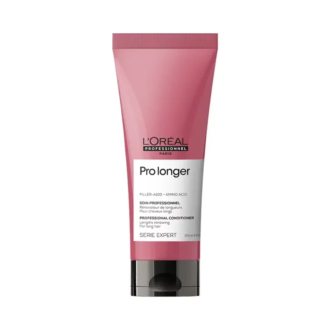 Pro Longer Conditioner für langes Haar. Das Haar ist dicker und sichtbar gesünder. Es hilft, Haarschäden zu reduzieren und Haarbruch um bis zu 94 % zu reduzieren. Das Haar ist bis zu 5-mal glänzend. Der Conditioner ist mit einer exklusiven Kombination aus FILLER-A100 und Aminosäuren angereichert. Die verwendete Filler A-100-Technologie ist von L'Oréal Professionnel patentiert und dringt in den Haarkern ein, um ihn von innen voller und stärker zu machen. Es funktioniert an empfindlichen Enden oder in Bereichen, in denen es am dringendsten benötigt wird.